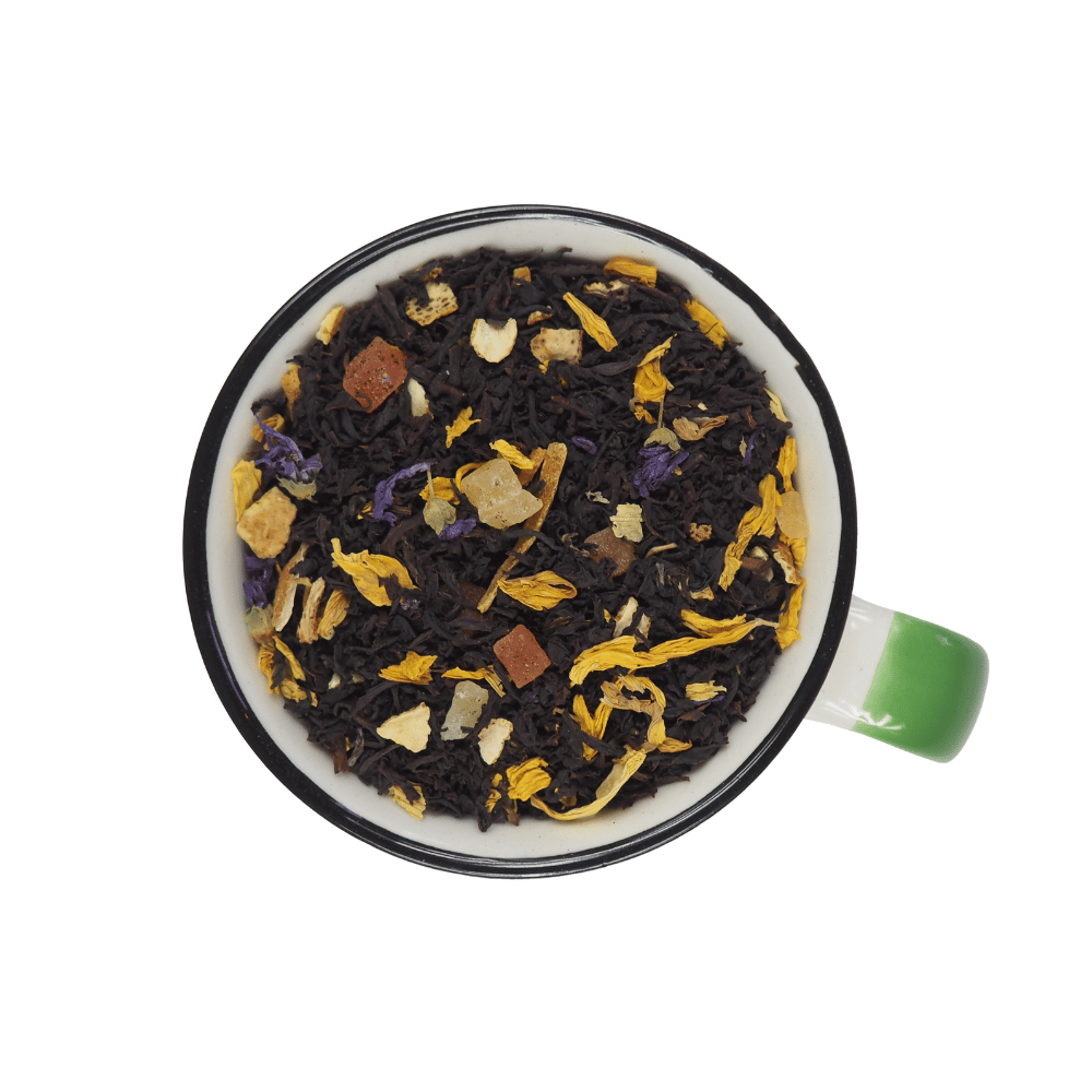 Czarna herbata Perła Orientu to przepyszna herbata cejlońska z dodatkiem tropikalnych owoców ananasa, mango i papai oraz cytrusowej nuty zawartej w skórce pomarańczy. Całość uzupełnia subtelny kwiatowy aromat płatków słonecznika i malwy. To wykwintna mieszanka o zróżnicowanym bukiecie smaków.