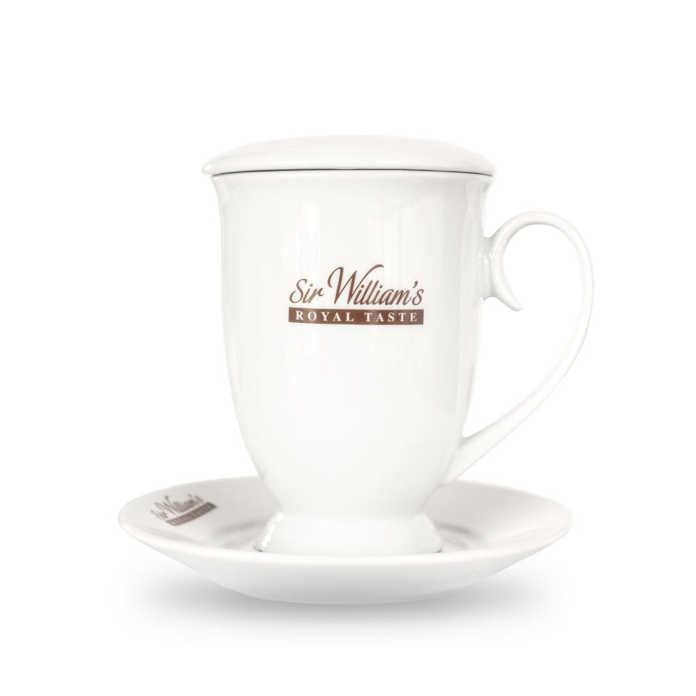 Ceramiczny kubek Sir William's Royal Taste 400ml - z talerzykiem i pokrywką - elegancki