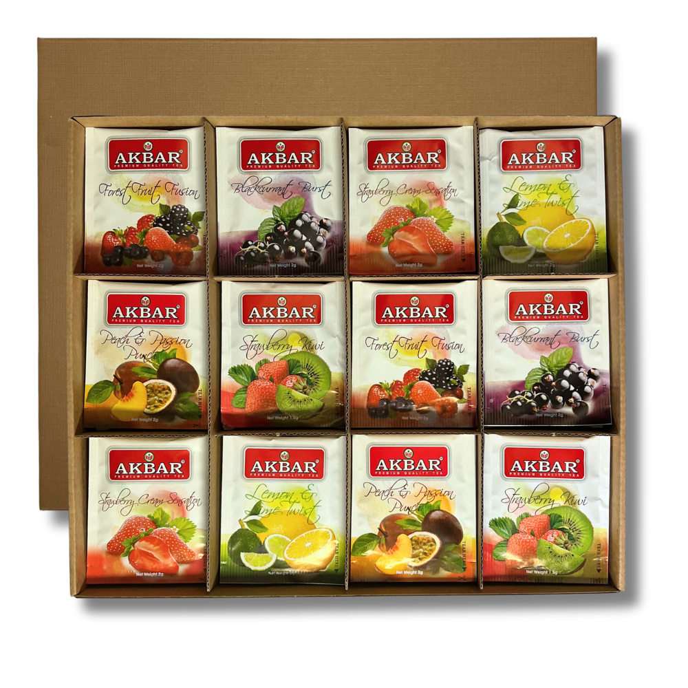 Herbata Akbar to zestaw wysokiej jakości herbat cejlońskich do degustacji. Herbaty Akbar mają przyjemny intensywny aromat i smak, który zawdzięczają, idealnemu do uprawy herbaty, klimatowi panującemu na Sri Lance. Dodatkowo zestaw urozmaica zielona herbata, która jest delikatnym akcentem w zestawie. Pakowana w wygodny kartonik.