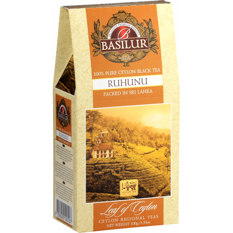 Herbata Basilur Ruhunu to wyjątkowo aromatyczna herbata z nizinnych upraw na Sri Lance. Uprawiana na wysokości do 600 m n.p.m. Niespotykane w innych regionach warunki klimatyczne nadają tej herbacie wyjątkowy wygląd i intensywny aromat oraz subtelny, lekko słodki napar bez goryczki.