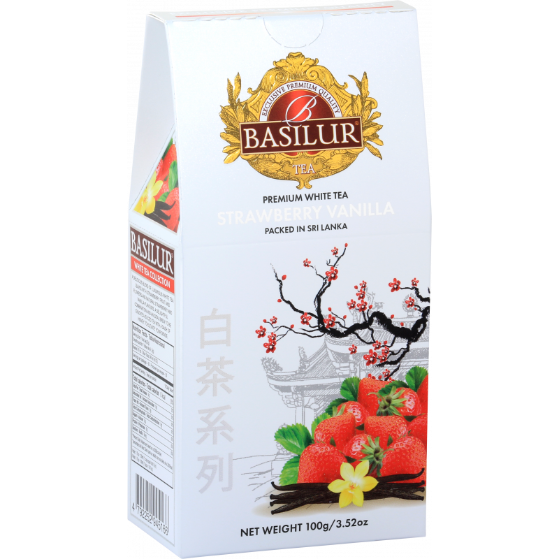 Herbata Basilur White Tea Strawberry Vanilla 100g w kartoniku - biała liściasta o smaku truskawki z wanilią