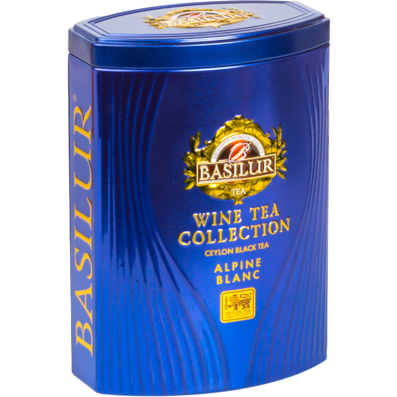 Herbata Basilur Wine Alpine Blanc z serii Wine Tea Collection to czarna herbata premium w ozdobnej puszce. To wysokiej jakości herbata gatunkowa Pekoe, czyli składająca się z mniejszych listków, z małą ilością perforacji. Ma głęboki i pełny aromat, a w połączeniu z owocem soursopa, rodzynkami i nutą białego wina, jest to przyjemny orzeźwiający napar. Pakowana w oryginalną puszkę wspaniale sprawdzi się jako prezent dla najbardziej wymagających herbaciarzy.