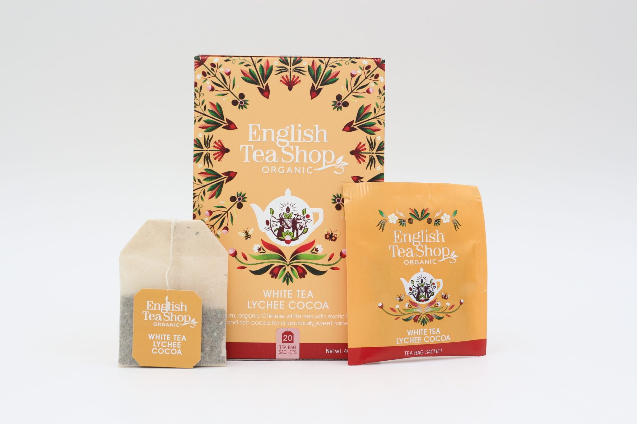 Herbata English Tea Shop White Tea Lychee Cocoa 20x2g koperty - biała herbata organiczna z kakao i liczi